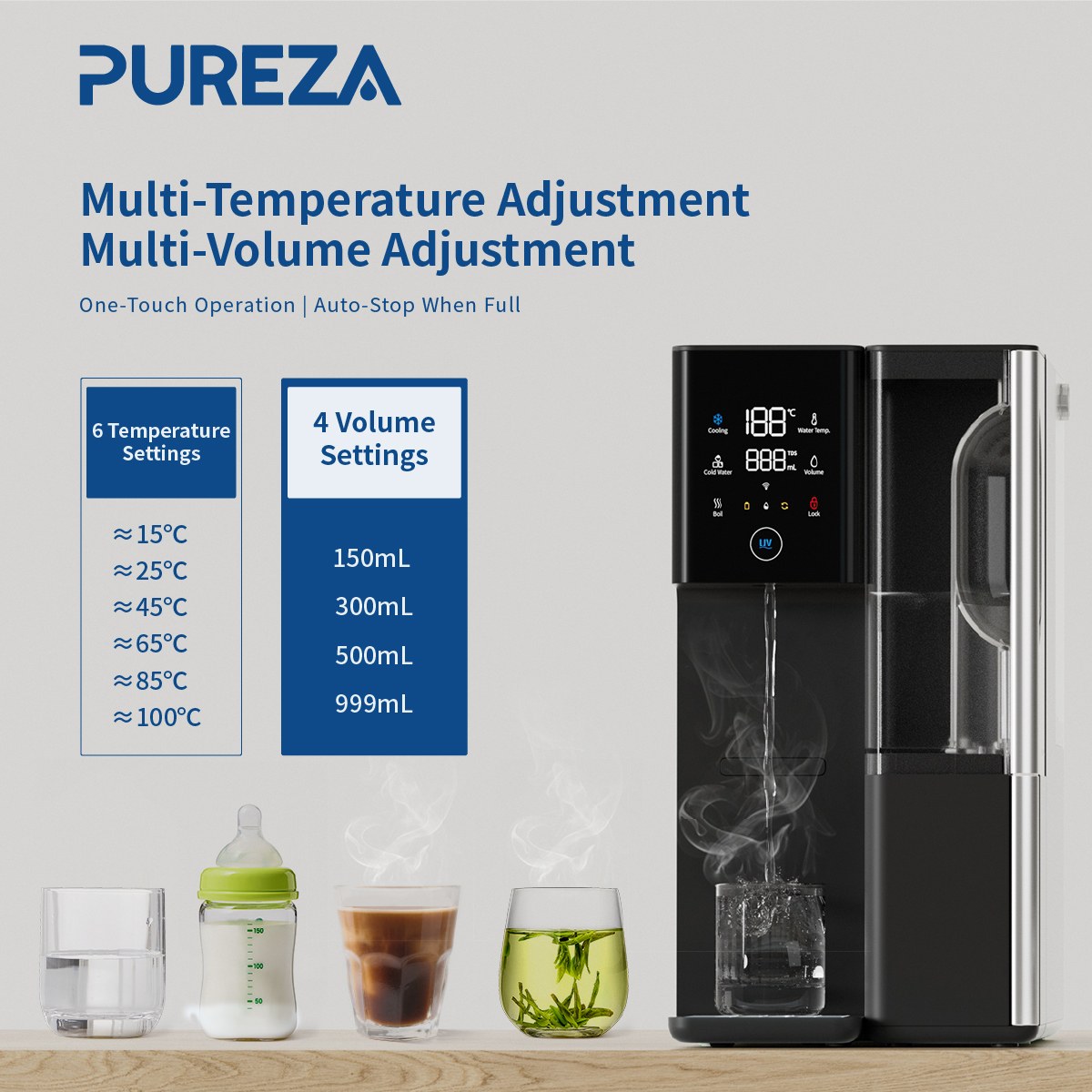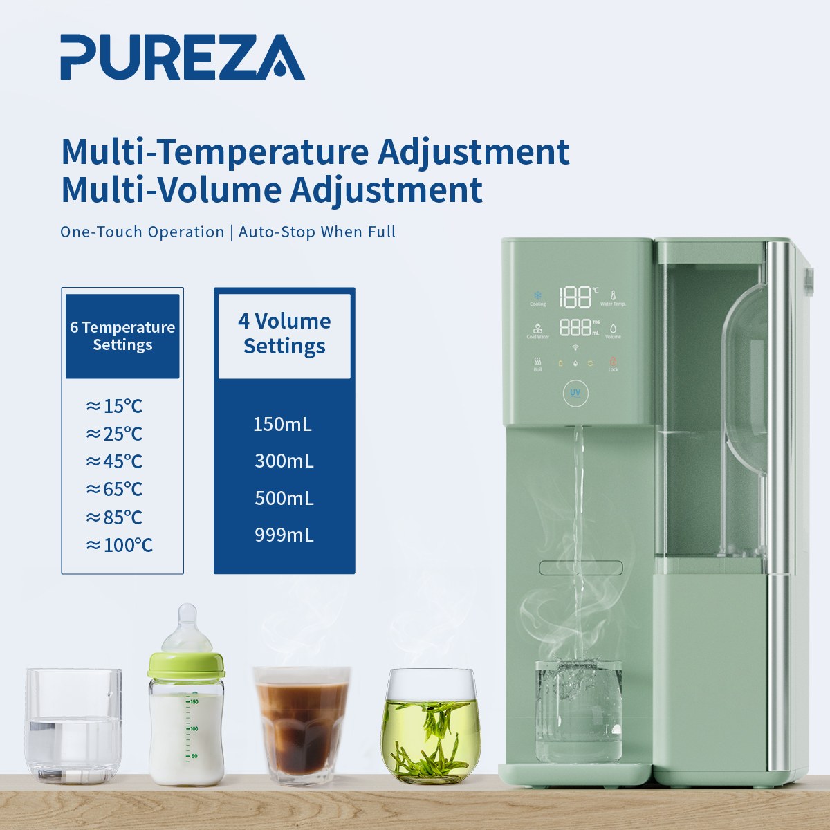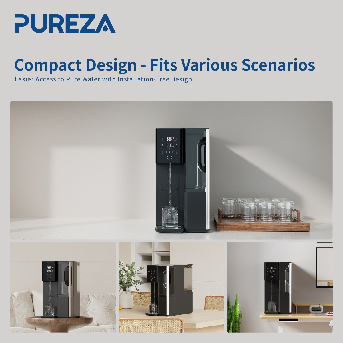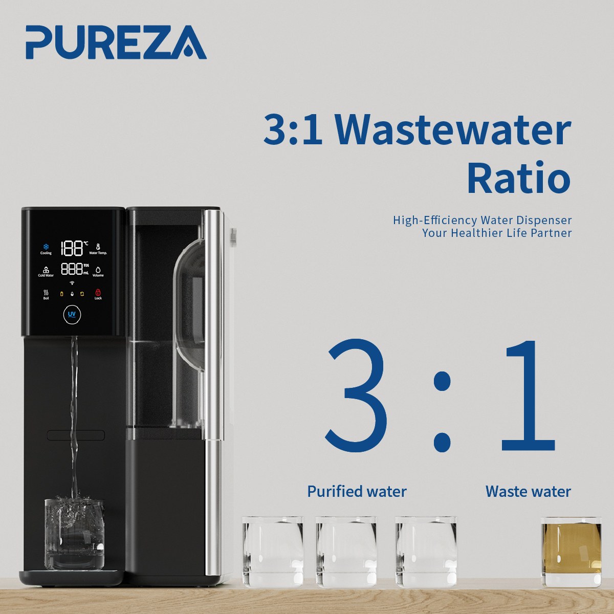 نظام التناضح العكسي PU-T01 المُثبّت على سطح الطاولة صديق للبيئة وفعّال. نسبة مياه الصرف الصحي فيه 3:1 تُشير إلى كفاءته في توفير المياه، مما يُساعد على الحفاظ على الموارد الثمينة.