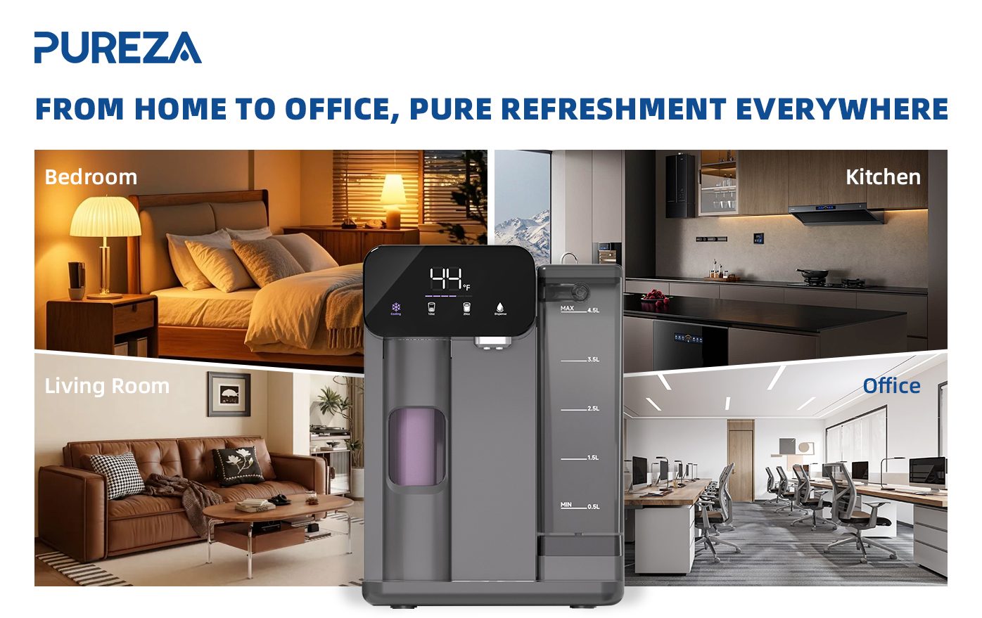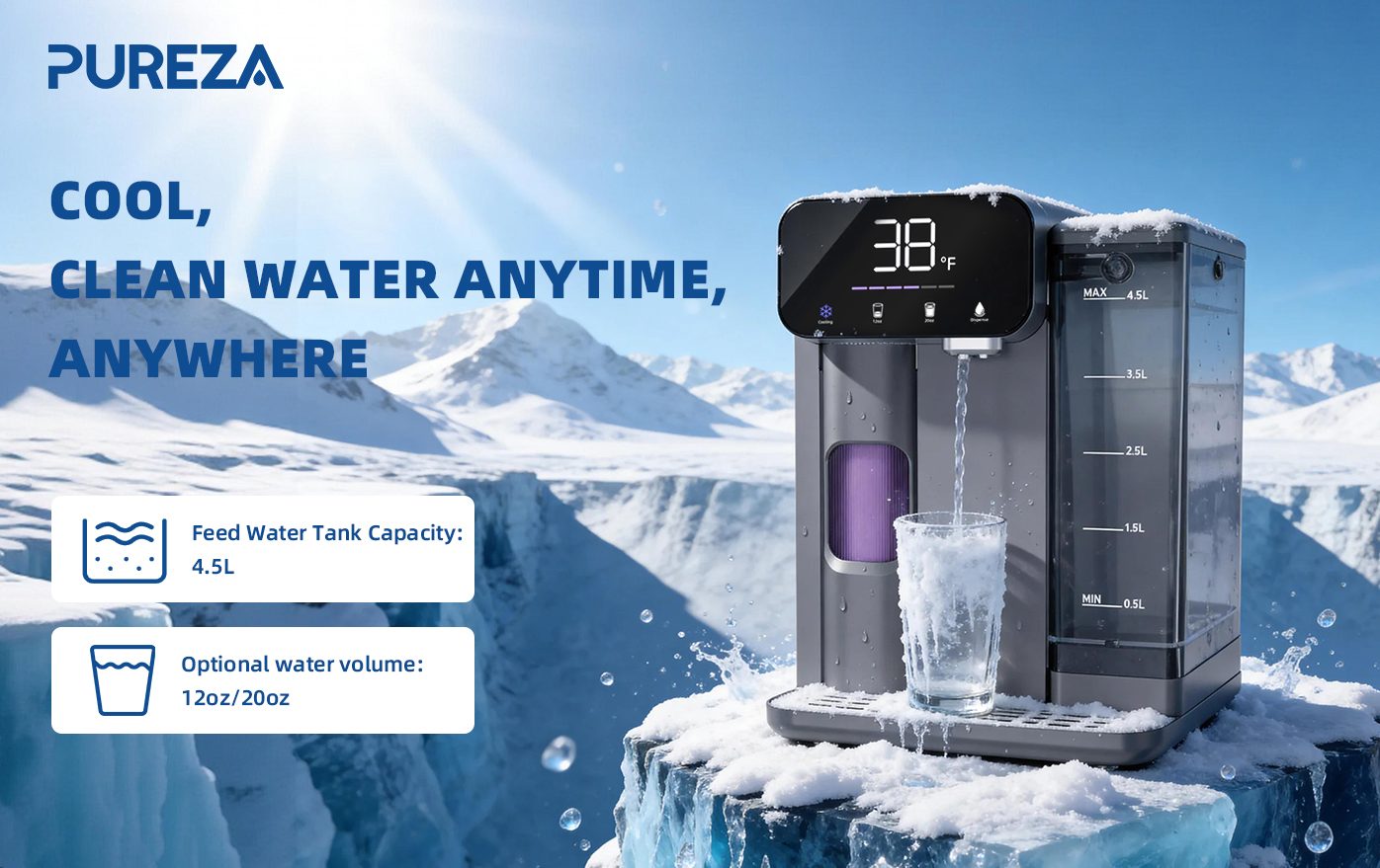 يجمع جهاز PU-T02 بين الترشيح والتبريد والتوزيع في نظام واحد صغير الحجم، مما يجعل الترطيب أسهل من أي وقت مضى.