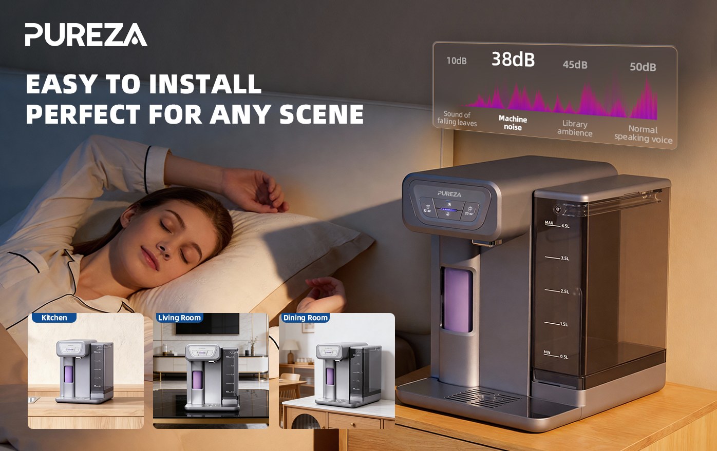 ال موزع مياه التبريد PU-T02 لسطح الطاولةيضمن الحصول على مياه باردة عالية الجودة في أي وقت، مما يجعل الترطيب الذكي سهلاً ومتاحاً للجميع.